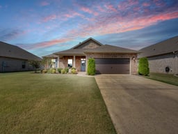 Beautiful 4-bedroom home with a spacious split floor plan, perfect for entertaining. The chef's kitchen features stainless steel appliances including refrigerator, double ovens, a large island, under-cabinet lighting, and a walk-in pantry. The cozy living room boasts a gas log fireplace. The master suite includes hardwood floors, a garden tub, a separate shower, and a tiled walk-in closet. The garage offers a utility sink. Enjoy outdoor living in the privacy-fenced backyard with a 10x12 shed, extended patio, and sprinkler system. A true must-see.